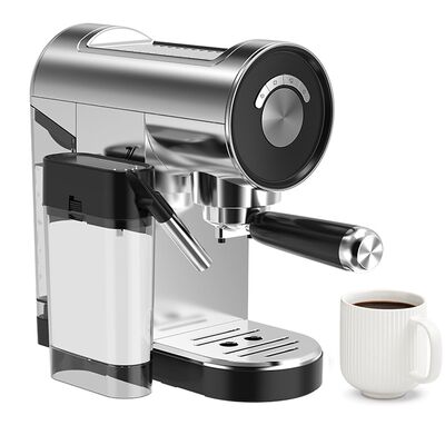Познакомьтесь с полуавтоматическим кофемашиной 20 бар Эта полуавтоматическая машина для эспрессо имеет 20-барное давление насосаКонструкция PP/нержавеющая сталь с съемным 0,9L прозрачным резервуаром для воды, молочным резервуаром,и регулируемая капельная поднос обеспечивает легкую очистку и обслуживание. Включает в себя стальную чашку нагревательную пластинку, 1 и 2 чашки фильтры для измельченного кофе, программируемые настройки, контроль температуры, система горячей воды, и функцию самоочистки.Защищенные устройствами безопасности от перегрева и перенапряжения.